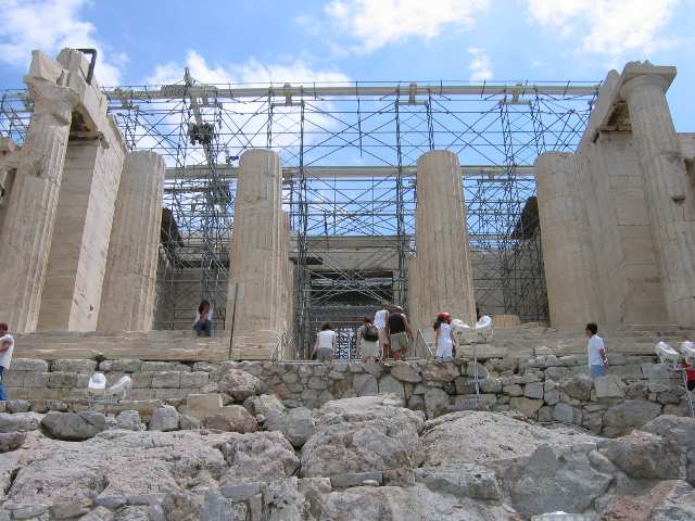 Okay ruins-lovers, here it is, the Propylaea. The what? It's a monument marking the entrance to the Acropolis, the holy rock of ancient Athens. Built in 437-432 BC,