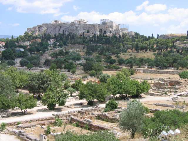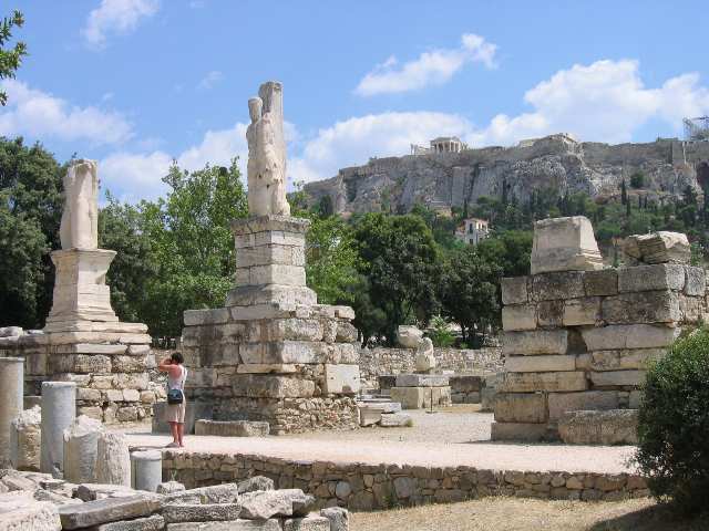 The ruins of ancient Agora; the Acropolis beyond.