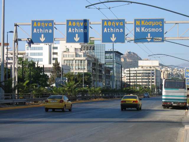 Most traffic signs display their legends in both Greek and modern alphabets, for example,