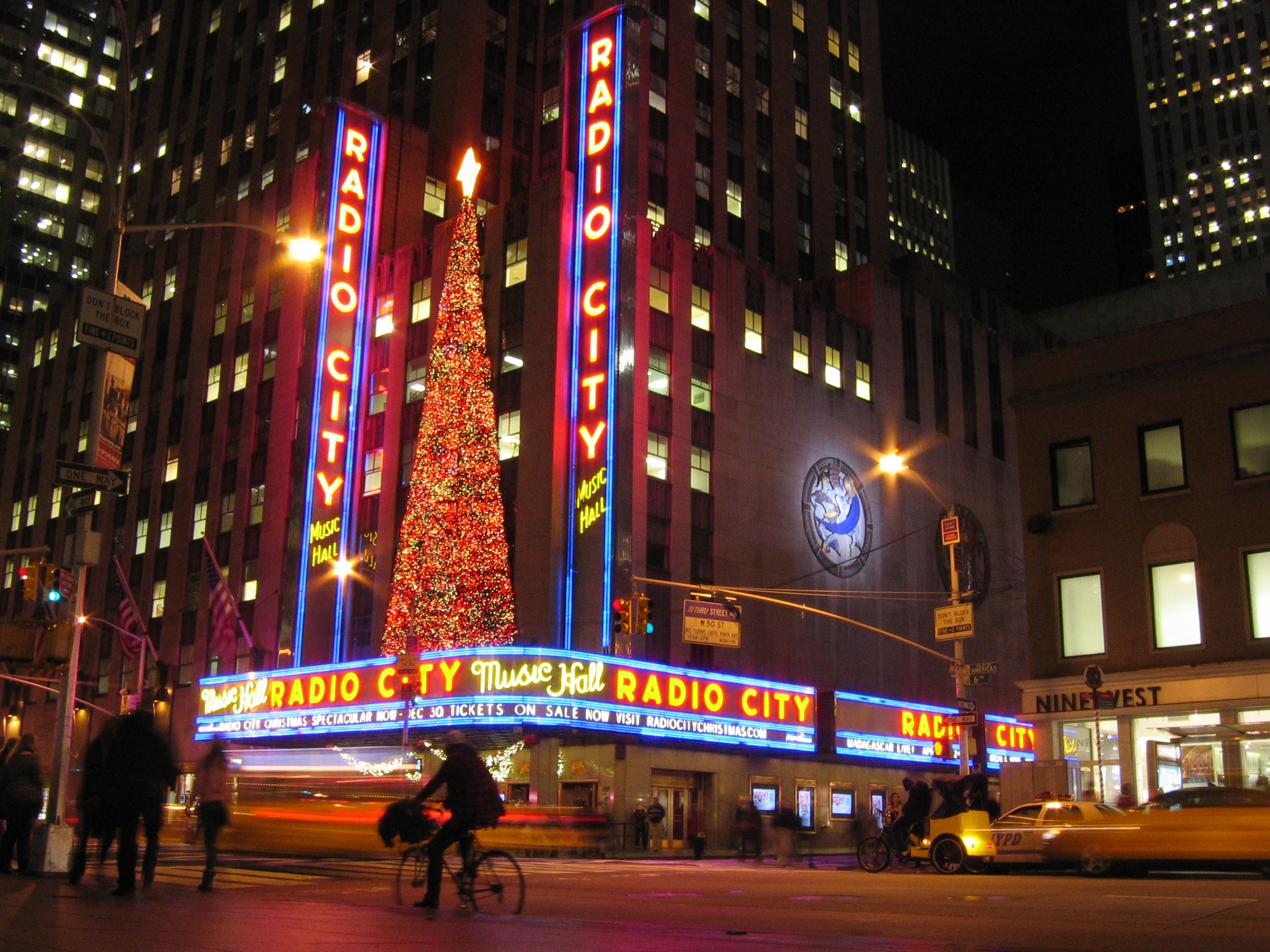 Just a block away, at 6th Avenue and 50th Street, is Radio City Music Hall, all decked out for the holidays. Click on the photo for a larger image.