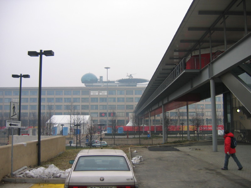 Fiat still has offices here, and in additon to there being a test track on the roof of the building, it also has a helicopter landing pad.