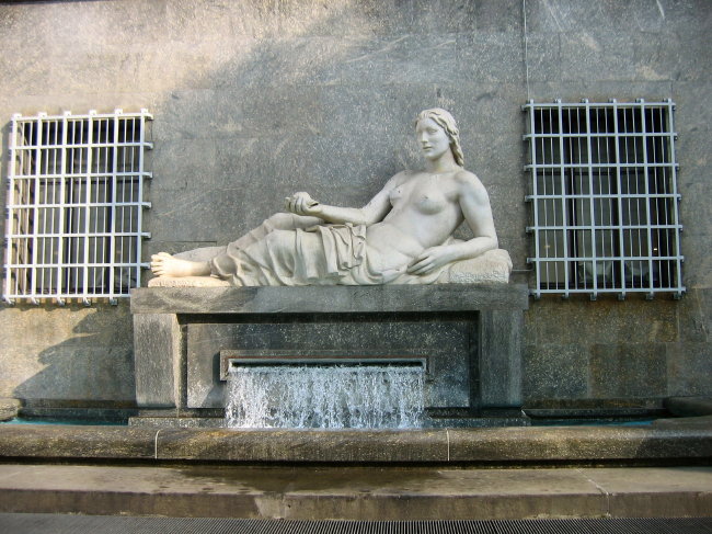 The square contains these 2 large marble fountains to the rear of the 'twin' churches. They are Fontana Dora and Fontana Po,